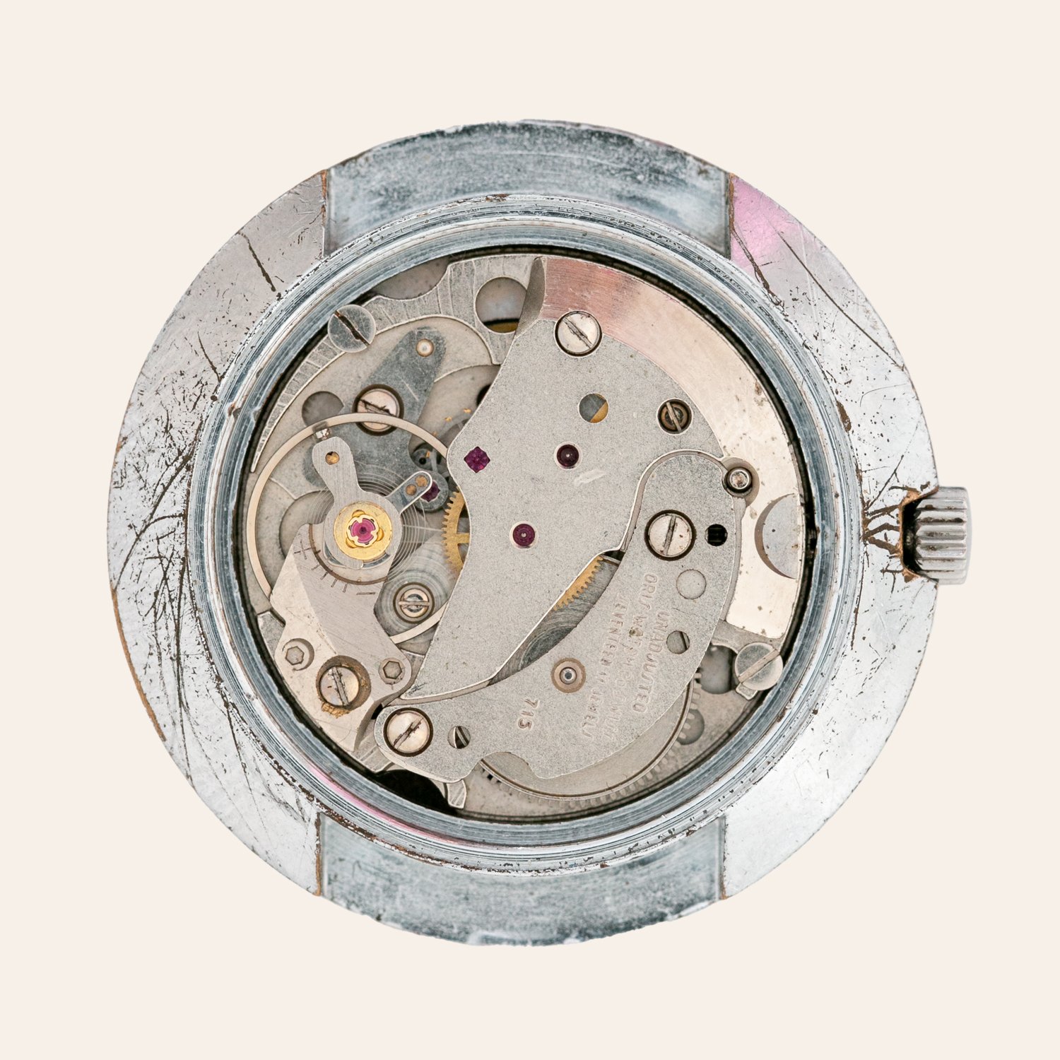 Desarrollado a comienzos de los años cincuenta por uno de los fabricantes de movimientos más prolíficos de Suiza, en su interior late un calibre manual de 17 rubíes, referencia A.S. 1021, fruto de una época en la que la estandarización de los procesos industriales permitió a decenas de marcas independientes ofrecer relojes de calidad bajo la consigna Swiss Made.